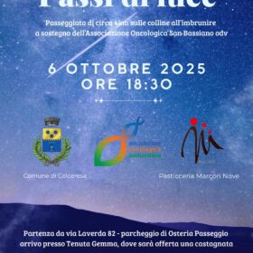 Passeggiata di circa 4 chilometri sulle colline all'imbrunire, a sostegno dell'Associazione Oncologica San Bassiano.